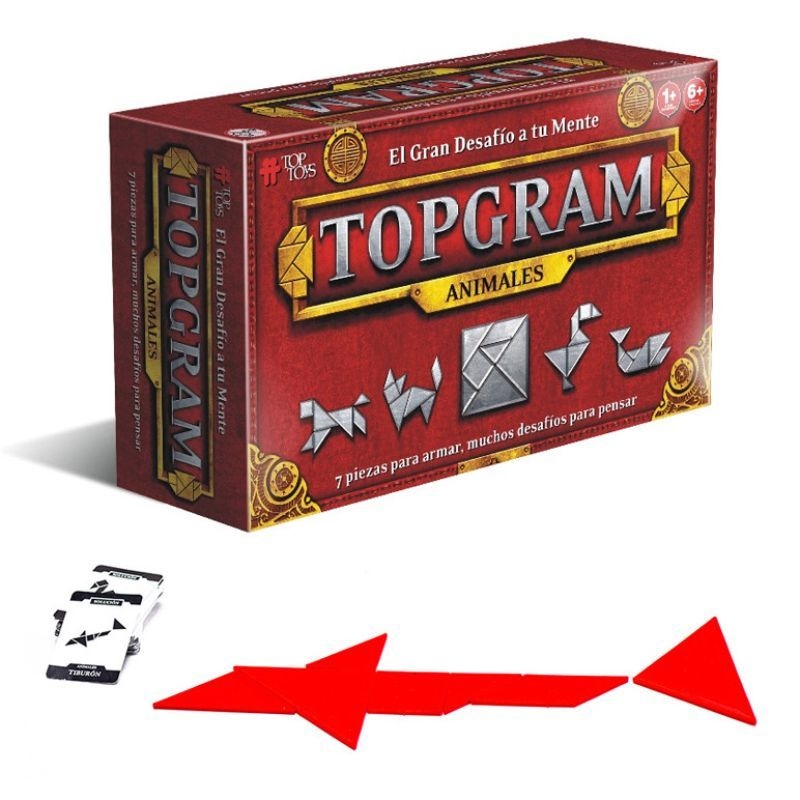 TOPGRAM ANIMALES; el gran desafío a tu mente. Sólo 7 piezas para pensar; muchos desafíos para jugar. La versión de figuras de animales. Edad: 6 años en adelante.